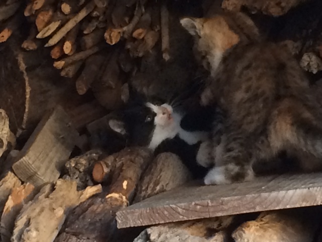 疲れて薪の上でお昼寝です。