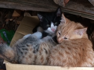 朝は寒くなってきたので、3匹が寄り添っていますね。
